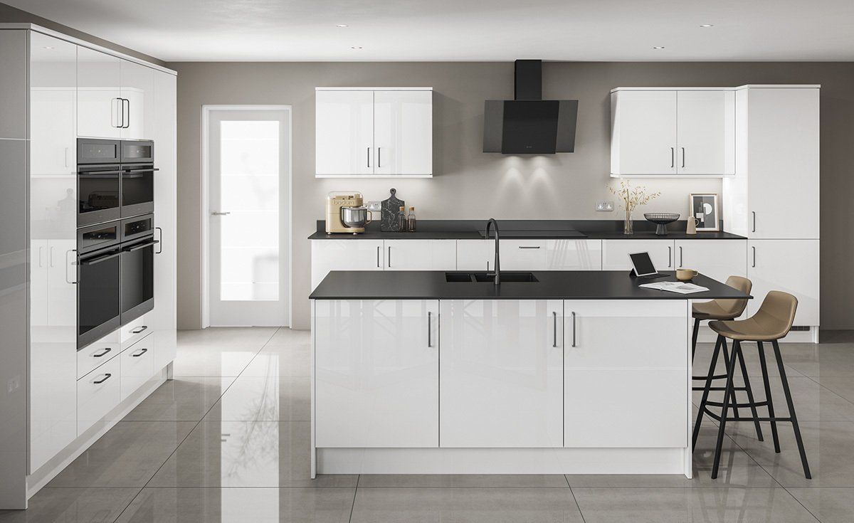 Eco kitchens offer European style platinum white cabinets and feature coordinated replacement ends in several different colours.
